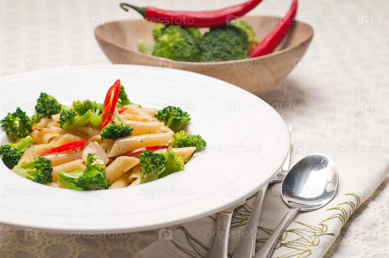 Итальянские макароны пенне с брокколи и перцем чили