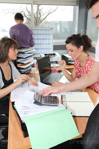 Люди в офисе с калькулятором
