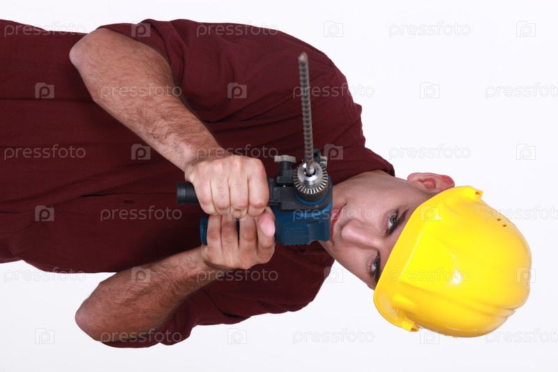 Мужчина прицеливается электродрелью