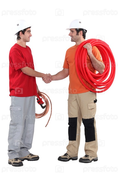 Водопроводчики пожимают руки