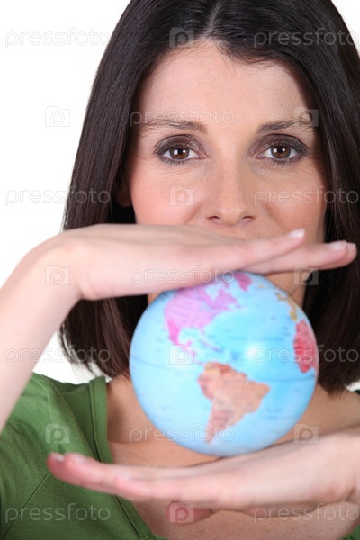 Женщина, держащая миниатюрный глобус