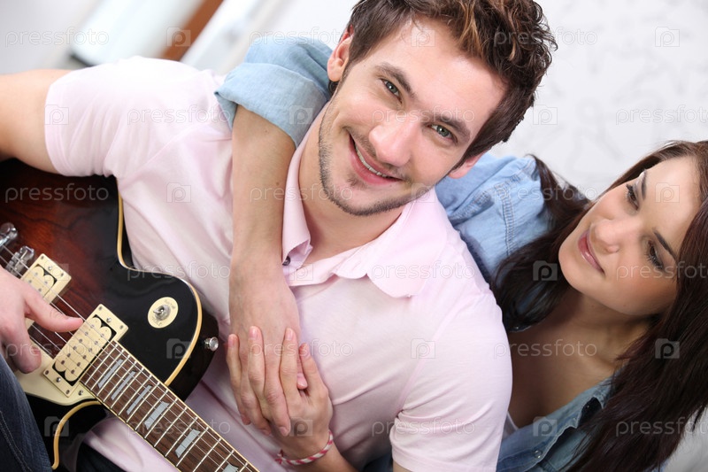 Молодая пара играет на гитаре