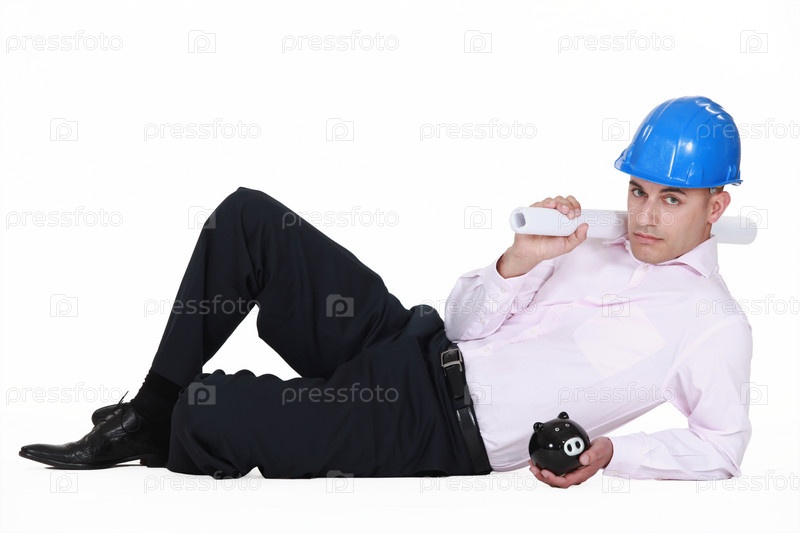 Архитектор позирует с копилкой