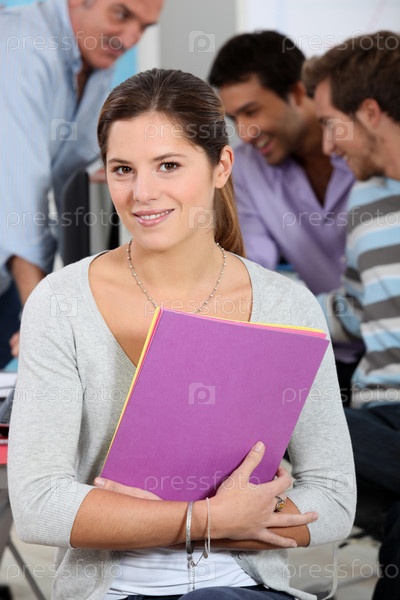 Девушка позирует в классе