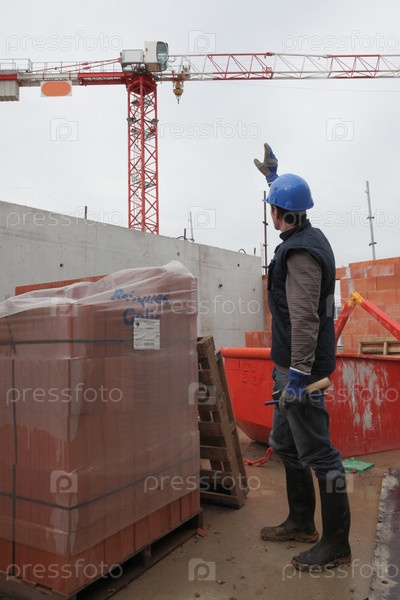 Работник делает знак другому рабочему