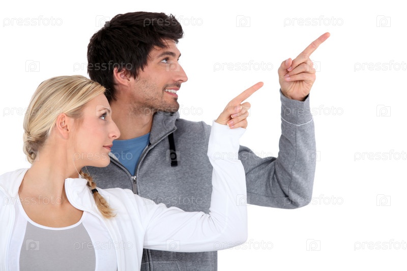 Пара указывает на белый фон