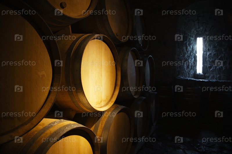 Бочки с вином в старом винном погребе