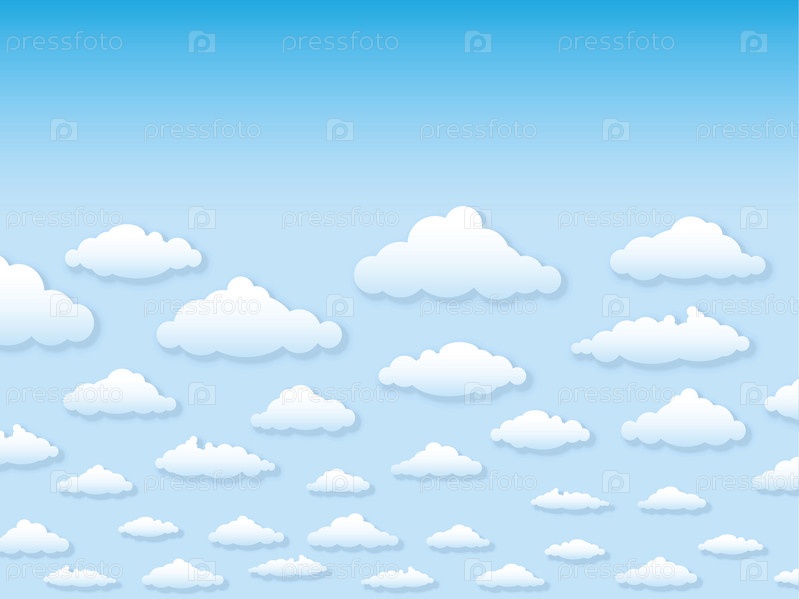 Иллюстрация, небо с облаками в мультяшном стиле