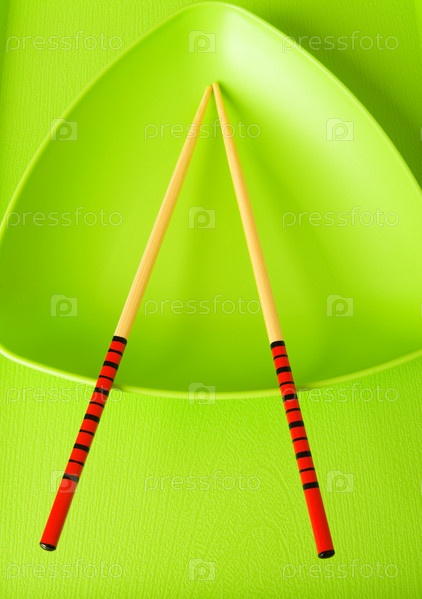 Палочки для суши в зеленой посуде