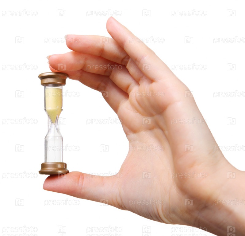 Женская рука с песочными часами крупным планом