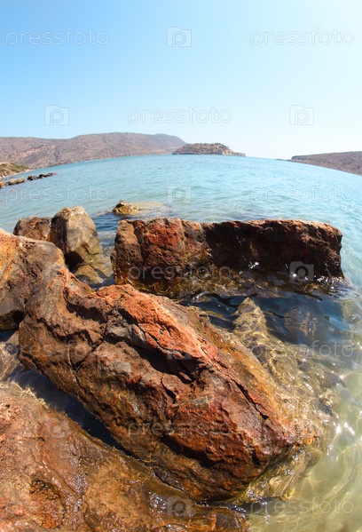 Красивый летний морской пейзаж. Элунда, Крит