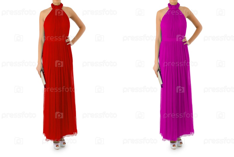 Женщина в платье на белом фоне, концепция моды