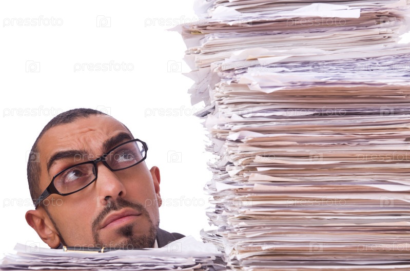 Занятой бизнесмен с большим количеством документов