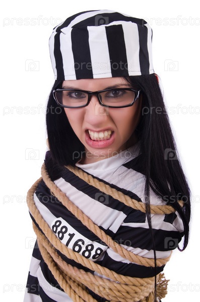 Заключенный в полосатой форме на белом фоне