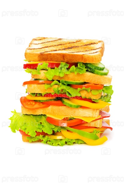 Гигантский бутерброд, изолированный на белом фоне