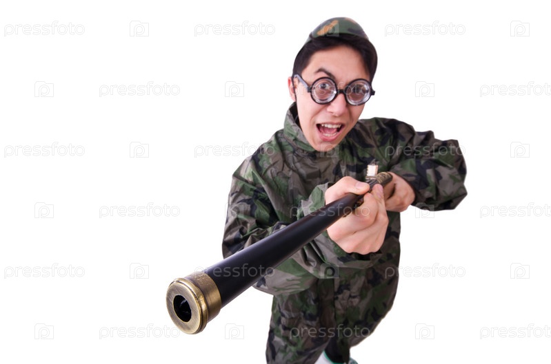 Смешной солдат, изолированный на белом фоне