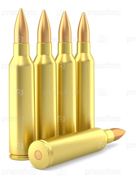 Крупнокалиберные патроны для винтовки на белом фоне. 3D изображение высокого разрешения