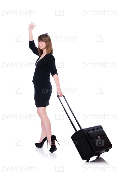 Молодая девушка путешественник, изолированная на белом