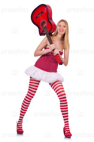 Молодая гитаристка, изолированная на белом