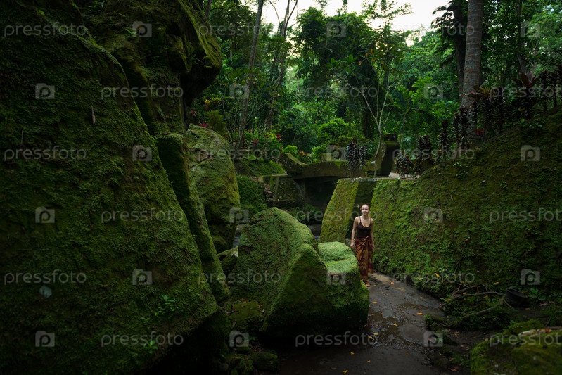 Молодая женщина среди руин храма