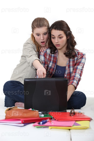 Две студентки с ноутбуком