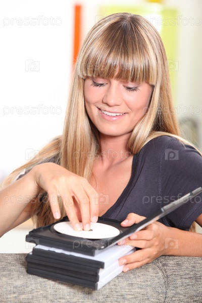 Белокурая девушка с компакт-дисками