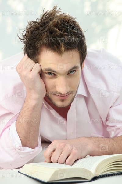 Мужчина у себя дома с книгой