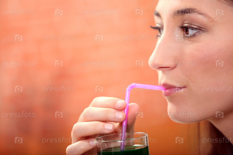 Женщина пьет зеленый напиток