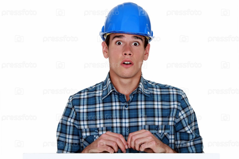 Испуганный молодой строитель