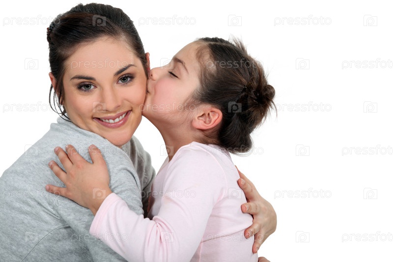 Дочь целует маму