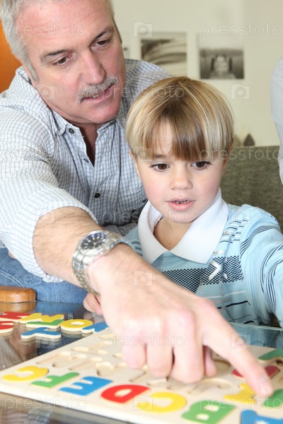 Дед учит внука читать