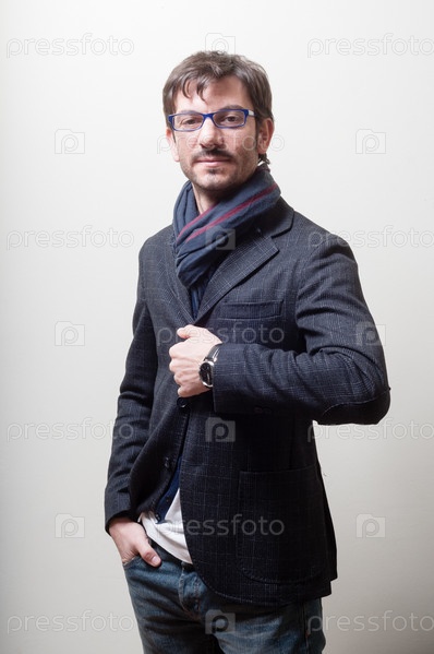 Улыбающийся деловой мужчина в стиле кэжуал в очках
