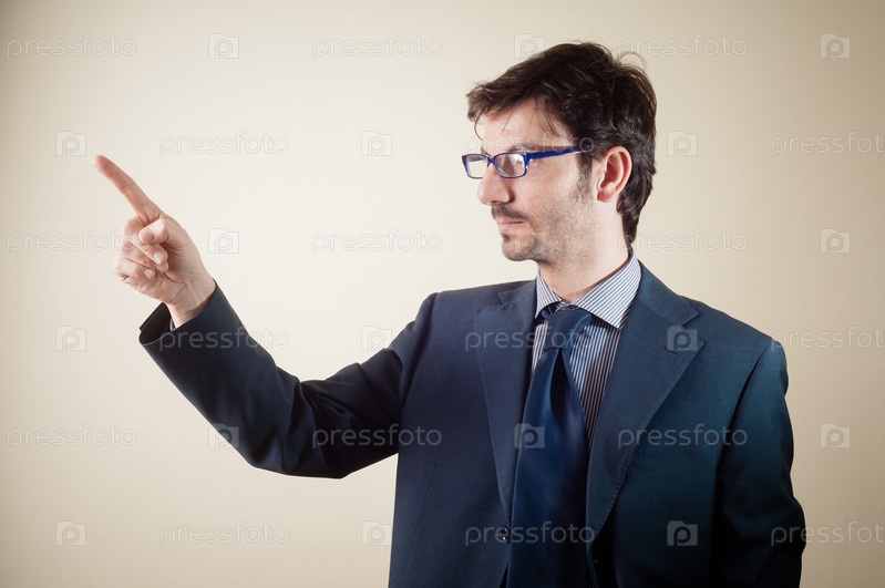 Успешный бизнесмен указывает пальцем