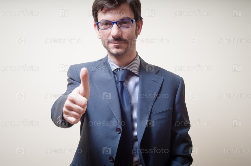 Успешный бизнесмен показывает большой палец