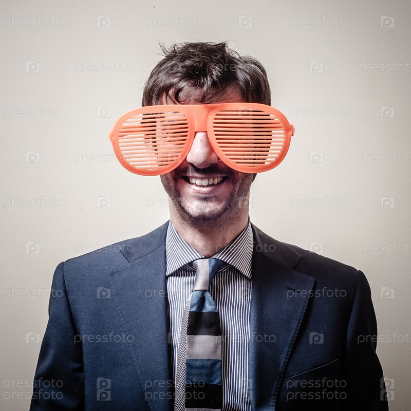Смешной бизнесмен с большими оранжевыми очками