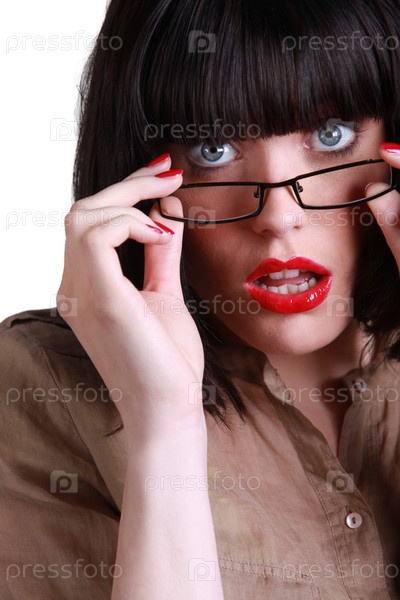 Шокированная брюнетка грузоподъемные очки кадр