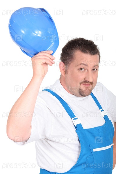 Портрет рабочего, машущего каской