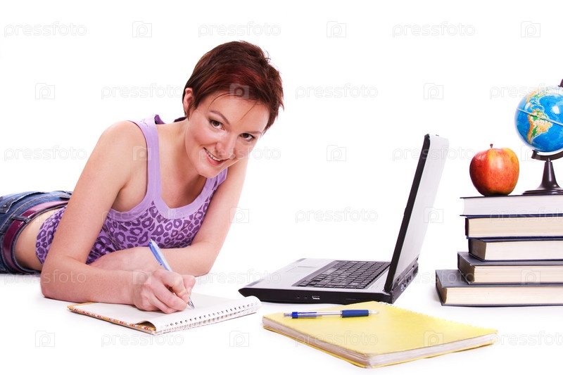Девушка делает домашнее задание