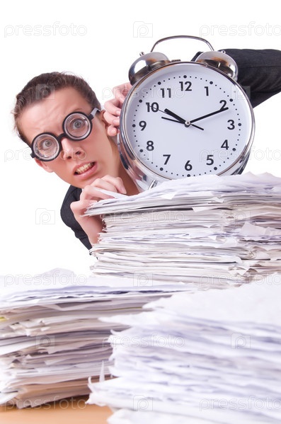 Бизнес-леди с гигантским будильником