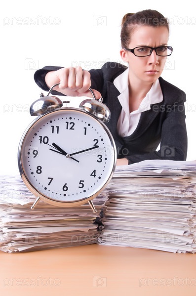 Бизнес-леди с гигантским будильником