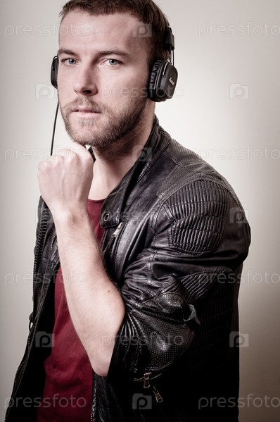 Стильный хипстер слушает музыку