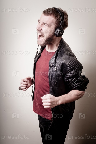 Стильный хипстер слушает музыку