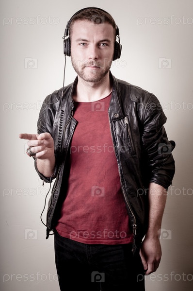 Стильный хипстер слушает музыку