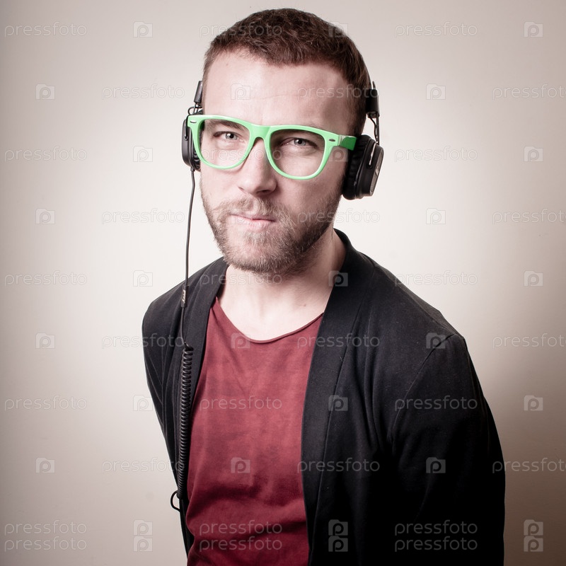 Стильный хипстер слушает музыку