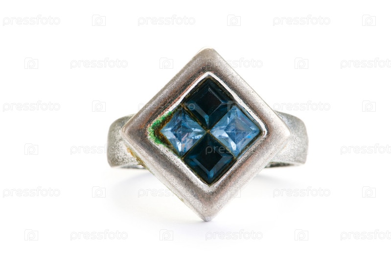 Ювелирное кольцо на белом фоне