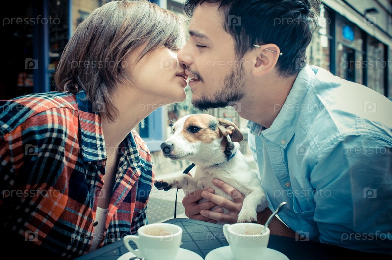 Пара с джек расселом в кафе