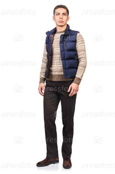 Мужчина в модной одежде, изолированный на белом фоне