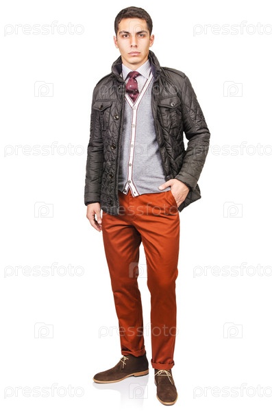 Мужчина в модной одежде, изолированный на белом фоне