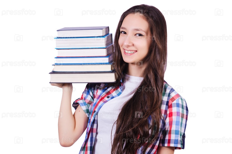 Студент с книгами, изолированный на белом фоне