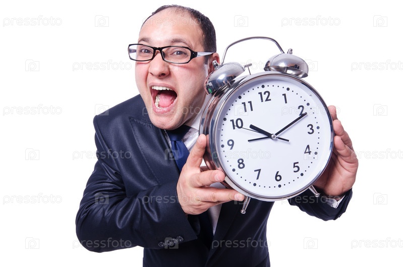 Бизнесмен с часами, изолированный на белом фоне